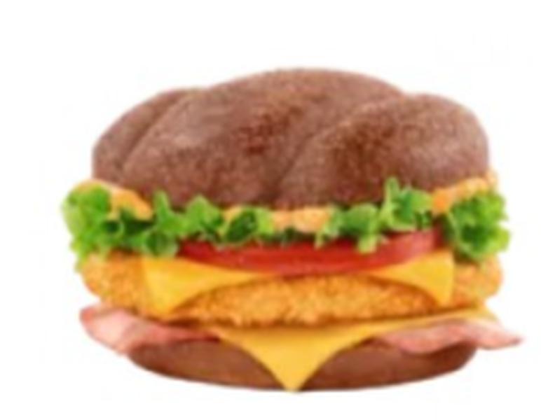 Состав: Бургер с сочной куриной котлетой в хрустящей панировке, ломтиком томата, свежим салатом, нежным сыром, яркой ноткой копченой индейки, уникальным соусом с ароматом малосольных огурчиков, и всё это на горячей, ржаной булочке с глазурью и гречневой посыпкой.