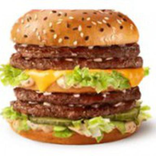 Состав: Большой бургер с четырьмя рублеными бифштексами из 100% говядины, маринованными огурчиками, свежим салатом «Айсберг», ломтиком плавленого сыра Чеддер и специальным соусом «Биг Хит» на новой булочке с двумя видами кунжута