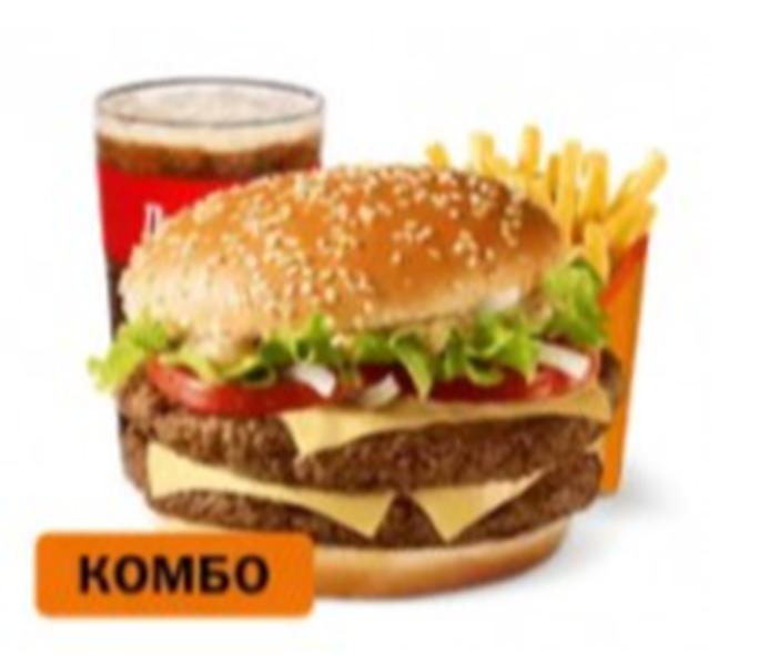 Состав: Большой Комбо состоит из Двойного Биг Спешиал, Картофеля на выбор и Напитка на выбор. Цена Комбо может меняться в зависимости от комплектации.