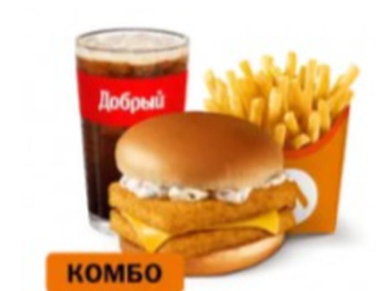 Состав: Большой Комбо состоит из Двойного Фиш Бургера, Картофеля на выбор и Напитка на выбор.Цена Комбо может меняться в зависимости от комплектации.